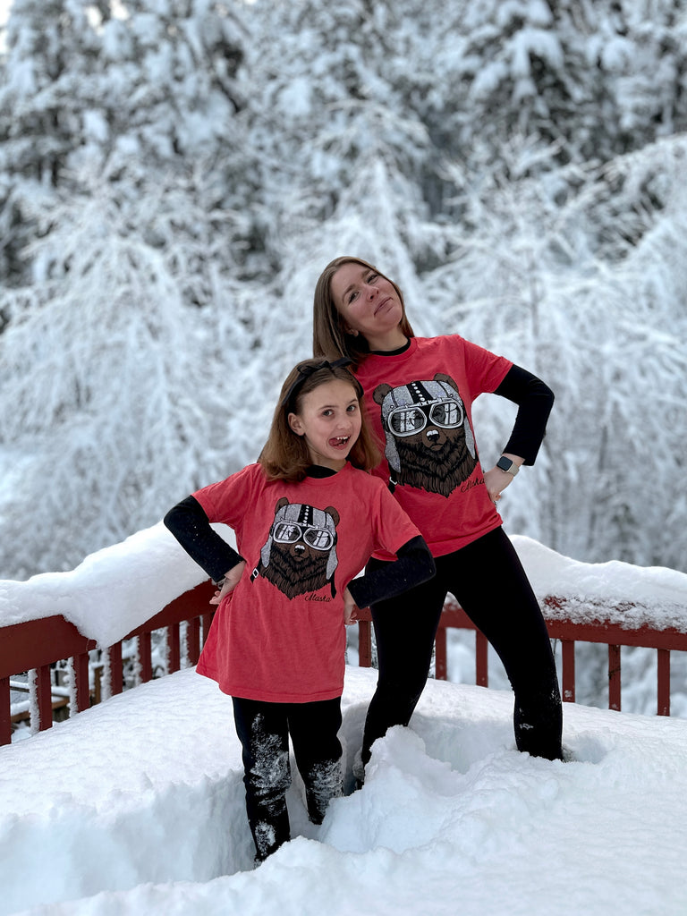 Our Tri-blend fabric is super soft and lightweight.  The best fabric, combined with high quality printing, equals the perfect everyday t-shirt for the Alaskan Kid.