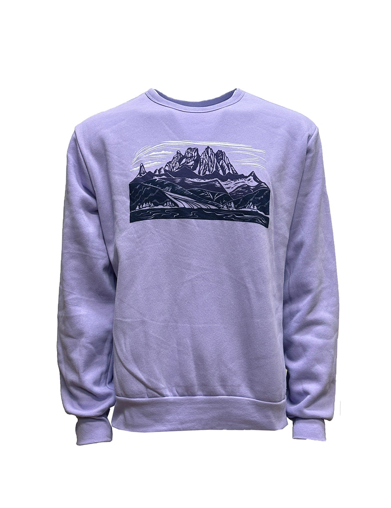 Hand-carved design by Adrift Prints, this design features the majestic Alaska mountain range "Devils Paw" amongst other rolling mountains in the Juneau Icefield and the Taku Glacier.